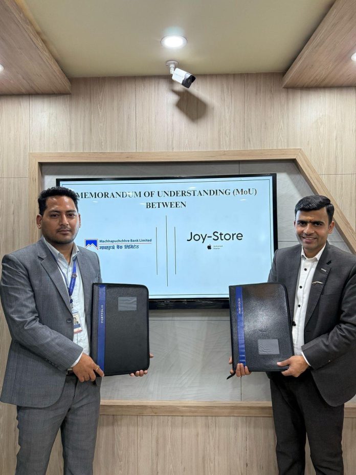 उक्त सम्झौतामा जोय स्टोरका तर्फबाट कम्पनीका प्रवन्ध निर्देशक गुरु शर्मा र माछापुच्छ्ररे बैंकका तर्फबाट शाखा कार्यालय न्युरोड, काठमाण्डौंका शाखा प्रमुख निशेष केसीले एक कार्यक्रम गरि सम्झौता पत्रमा हस्ताक्षर गरेका हुन् । सम्झौता अनुसार नेपालमा आईफोनको आधिकारिक बिक्रेता जोय स्टोरबाट एप्पलका समान खरिदमा माछापुच्छ्रे बैंक लिमिटेडका कर्मचारी तथा ग्राहकहरुले छुट सुविधा लिन सक्नेछन् ।