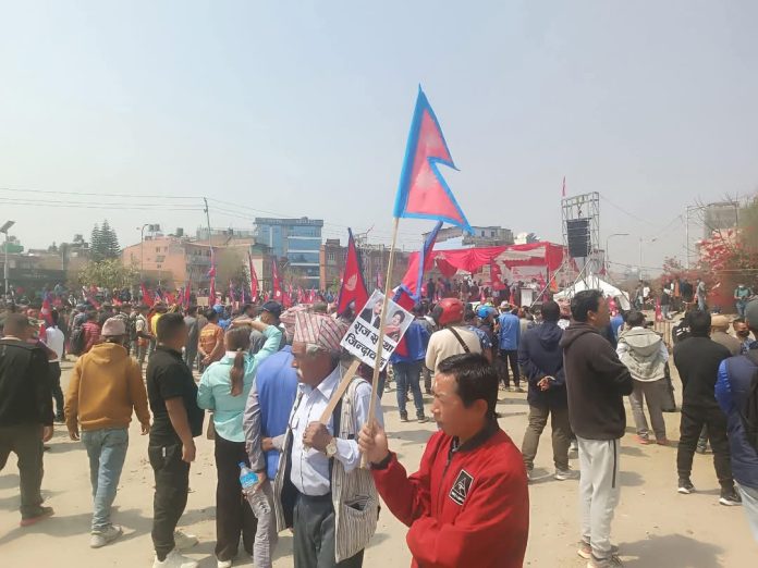 राजनीतिविशेषसमाचार काठमाडौंको तिनकुनेमा राजावादी समूहसँग प्रहरीबीच झडप By क्लाउड पत्रिका - १४ चैत्र २०८१ १३:०९ Facebook Twitter Google+ Pinterest WhatsApp काठमाडौं । काठमाडौंको तिनकुनेमा राजावादी समूहसँग प्रहरीबीच झडप भएको छ। राजावादी केहीबेरअघि प्रहरीसँग राजावादी समूहबीच तनाव भएको हो । उनीहरूले निषेधित क्षेत्र तोडेर नयाँ बानेश्वरतर्फ अघि बढ्न थालेपछि प्रहरीले रोकेको थियो । Your browser does not support the video tag.