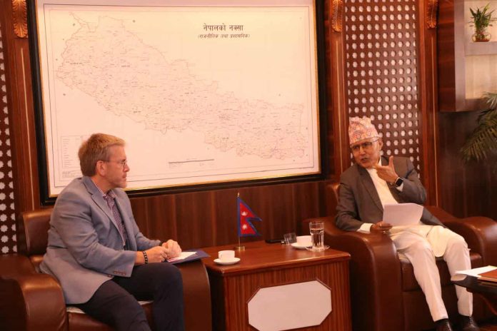काठमाडौं । अर्थमन्त्री रामेश्वर खनाल र नेपालका लागि संयुक्त राज्य अमेरिकाका राजदुत डिन आर थमसम बीच आज अर्थ मन्त्रालय, सिंहदरबारमा शिष्टाचार भेट भएको छ। उक्त अवसरमा अर्थमन्त्री खनाल र अमेरिकी राजदुत बीच नेपालको हालको परिवर्तित अवस्था र संयुक्त राज्य अमेरिकाले यस परिस्थितिमा नेपाललाई गर्न सक्ने सहयोगका विषयमा छलफल भयो ।