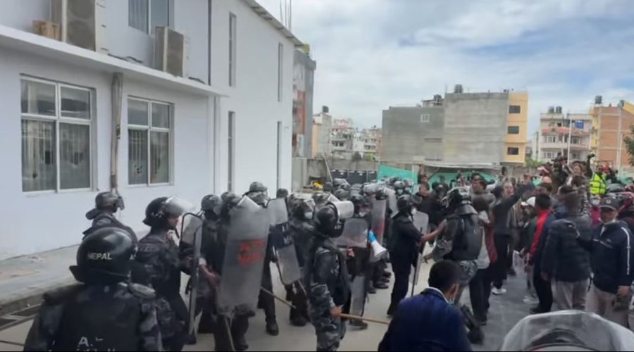 अस्पतालको गेट फोडेर भित्र पसेका प्रदर्शनकारीहरूले अस्पतालमा ढुंगामुढा गरेपछि प्रहरीले भीडलाई तितरवितर बनाउन लाठीचार्ज गर्नुका साथै केही राउन्ड आश्रुग्यास समेत प्रहार गरेको छ ।