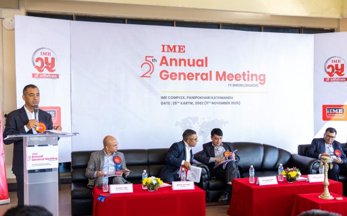 काठमाडौं, २६ कात्तिक । आइएमई लिमिटेडले २५औँ वार्षिक साधारण सभा सम्पन्न गरेको छ । मंगलबार काठमाडौंमा आयोजित सभामा बोल्दै कम्पनीका संस्थापक तथा अध्यक्ष हेमराज ढकालले २५ औँ वर्षमा व्यावसायिक हिस्सा बिस्तार गर्दै नयाँ प्रविधि एव रणनीतिका साथ आगामी दिनहरूमा अघि बढ्ने प्रतिबद्धता व्यक्त गरे ।