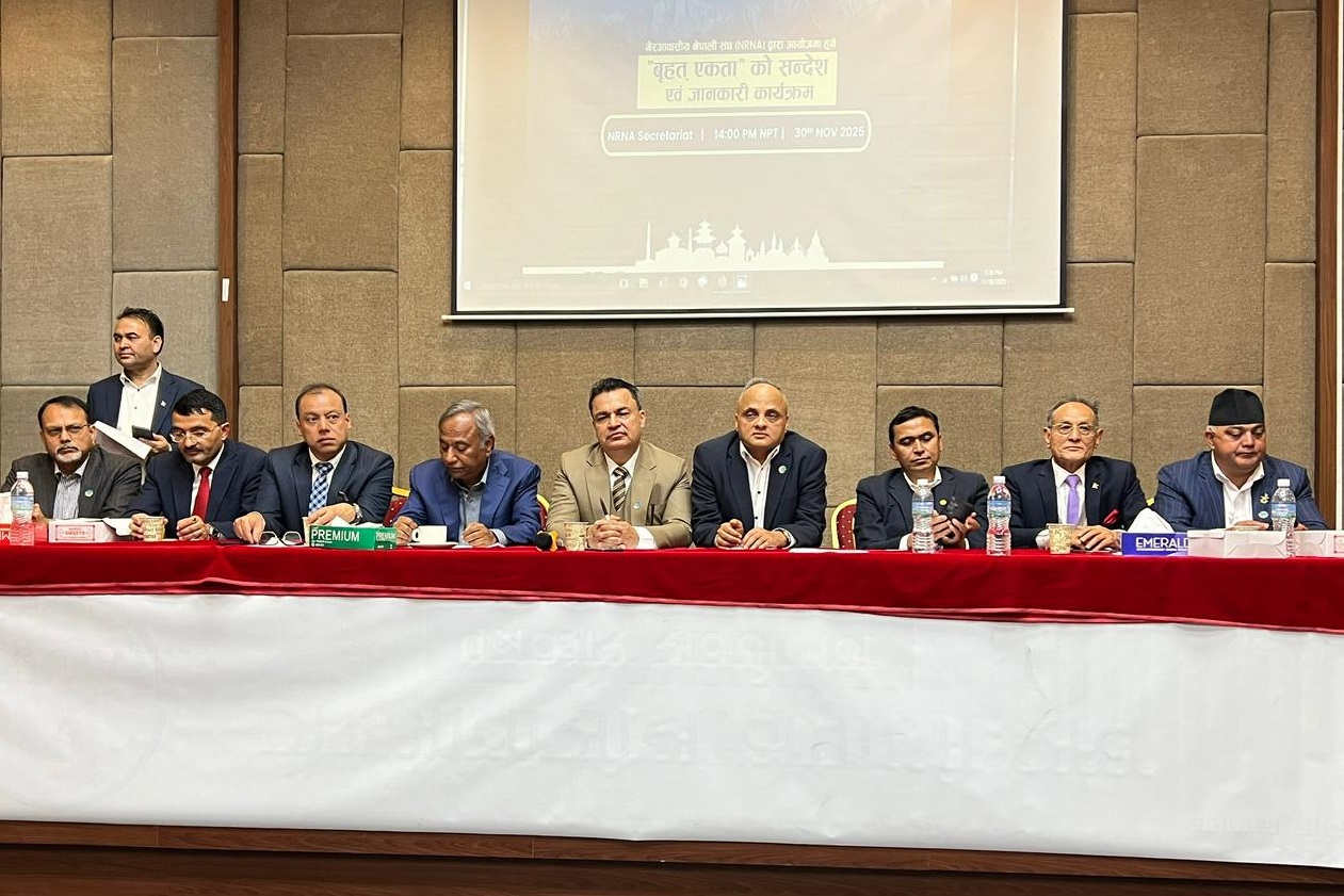 काठमाडौं । गैरआवासीय नेपाली संघ(एनआरएनए)का दुई कमिटीबीच एकता भएको छ। प्रधानमन्त्री सुशीला कार्कीको उपस्थितीमा आइतबार अध्यक्षद्वय बद्री केसी र महेश श्रेष्ठको समूहबीच एकता घोषणा भएको हो।