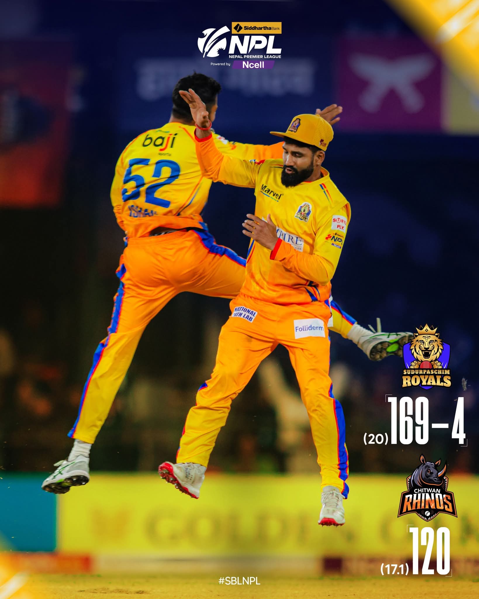 काठमाडौं । सुदूरपश्चिमले राेयल्सले चितवन राइनोजलाई ४९ रनले पराजित गर्दै सिद्धार्थ बैंक नेपाल प्रिमियर लिग (एनपीएल) को क्वालिफायर वान खेल्ने पक्का गरेको छ ।