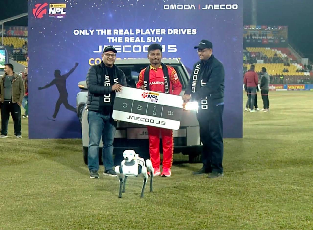 काठमाडौं । लुम्बिनी लायन्सका कप्तान रोहित पौडेलले कार पुरस्कार पाएका छन् । पौडेल नेपाल प्रिमियर लिग (एनपीएल) को उत्कृष्ट नेपाली खेलाडी बनेका हुन्।