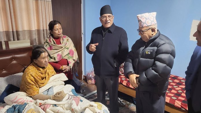 काठमाडौं । नेपाली कम्युनिस्ट पार्टीका संयोजक पुष्पकमल दाहाल ‘प्रचण्ड’ र सहसंयोजक माधवकुमार नेपालले पूर्वप्रधानमन्त्री झलनाथ खनालकी पत्नी रविलक्ष्मी चित्रकारलाई भेटेका छन्।